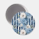 Aimant Fête de mariage floral bleu marine rayé