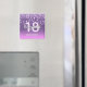 Un aimant élégant, glamour et girly pour les 18 ans. Faux scintillements de couleur violette et rose avec saupoudrage de faux diamants et un cadre doré. Modèles pour un nom, 18 ans et une date. Date de naissance ou date de la fête/anniversaire. Lettres de couleur blanche et rose. Le nom est écrit avec un style d'écriture manuscrit. Peut être utilisé comme un cadeau de fête ou comme un rappel de sauvegarde de la date pour votre fête.