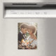 Aimant frigo avec votre photo personnalisée avec texte blanc superpose "amour" dans une police de script élégante et les noms et la date ci-dessous.