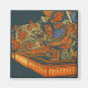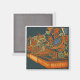 With deep indigo tones accented by fiery reds and warm ochres, the artwork remains visually striking even at a small scale. The textured, print-like finish gives the magnet an artistic, handcrafted feel, making it both a decorative piece and a practical everyday item.