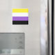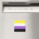 Le drapeau non-binaire a été créé en 2014 par l'activiste Kye Rowan. Chaque couleur de bande représente différents types d'identités non binaires : Jaune pour les personnes qui s'identifient à l'extérieur du binaire de genre, blanc pour les personnes non-binaires avec de multiples sexes, violet pour celles avec un mélange de sexe masculin et féminin, et noir pour les individus de genre.