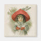 Sweet vintage fille est prête à jouer. Ses bras sont remplis de boules de neige et elle porte un élégant casquette rouge avec des plumes. Les branches de pin mettent l'accent sur l'arrière - plan.