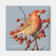 "Little Red" assis à côté de beaucoup de rouge : un beau mâle House Finch pose à côté de quelques savoureux roses d'aubépine / montagne (un favori de nombreux résidents de plumes toute l'année) dans la réserve de gestion de la faune de la baie de Boundary. Basé sur la photographie originale de W.H. Sim. Tous droits réservés. Voir plus sur zazzle.com/walkswithnature