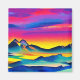 Les couleurs du soleil couchant se reflètent sur un terrain montagneux de pics et de vallées qui parsèment le paysage.