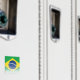 Brazilian flag with halftone effect applied to image.