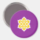Magnet with a design with the flag of Kyoto Prefecture in Japan (京都府, Kyōto-fu), a purple flag with a white and yellow symbol of a cherry flower