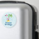 Un aimant festif de noël avec le texte : Joyeuses Fêtes. Dessin fantaisiste d'un flamant rose portant un chapeau de santa rouge. Posé sur un monticule de sable de plage jaune avec à l'arrière un cocotier vert et marron. Arrière - plan bleu clair. Design tropical sympa et festif.