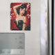 Cette illustration de pin-up asiatique capture une élégance sensuelle et intemporelle. La femme dépeinte présente une robe noire satinée à cou profond décorée de délicates broderies dorées qui met en valeur ses courbes. Ses cheveux noirs, surmontés de boucles rétro, sont ornés de fleurs de cerisiers roses, ajoutant une touche de douceur à son look audacieux. L'arrière - plan rouge vif, parsemé de pétales de fleurs de cerisiers et de touches dorées, crée un contraste saisissant qui met en évidence sa pose confiante, une main gracieusement placée sur sa tête. L'ensemble évoque une fusion fascinante entre le glamour vintage et l'esthétique orientale.