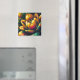Cette oeuvre numérique présente une représentation vibrante et abstraite d'une tulipe en pleine floraison. Le design complexe présente un mélange fascinant de couleurs, dont des jaunes vifs, des oranges et des touches turquoises, créant un effet visuel époustouflant.