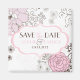 Fleurs blanches roses sauvent l'aimant Date Belles illustrations de fleurs blanches, tourbillons, feuillage et autres accents de couleur rose et marron. Ceci économise l'aimant de date est parfait pour un mariage d'été ou de printemps. Ce design est disponible en différentes couleurs.