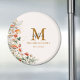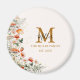 Voici notre aimant Fleurs de champignons de forêt Monogramme botanique floral. Présentant une illustration aquarelle de champignon, fraise, fleurs sur fond presque blanc. Et texte modifiable qui peut être personnalisé pour ajouter une touche unique. Convient comme cadeaux de pendaison de crémaillère ou de mariage.