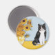 Aimant Fleurs de soleil - Chat noir et blanc