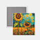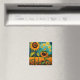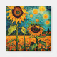 A.I. a créé l'interprétation d'un paysage de deux grands tournesols debout au milieu d'un champ de fleurs orange et rouge contre un ciel bleu tourbillonnant parsemé de soleil et d'étoiles.