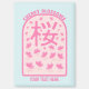 Illustration Victor de fleurs de cerisiers roses tombant au sol. Le texte lit les fleurs de cerisiers, tout comme le texte japonais kanji au centre du design rose.