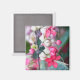 Photo de près de petites fleurs tropicales rouges, roses et blanches de Fidji aux étamines en dentelle.
