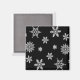 Flocon de neige blanc avec aimant de cuisine Arrière - plan noir.
