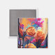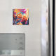 Art Abstrait Floral Orange Rouge Bleu Fleurs Carré Magnet