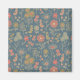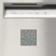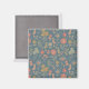 Cet aimant présente des fleurs stylisées dans les tons coralliens et vert olive sur un arrière - plan bleu denim.