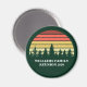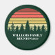 Cool jumelant magnets de réunion familiale en vert pour tout le groupe en excursion nature ou en camping. Ces cadeaux de conservation personnalisés présentent un magnifique coucher de soleil vintage sur une forêt de jolis arbres sous votre texte personnalisé.