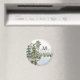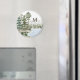 Présentation de notre aimant Forêt de pins verts et lac monogrammés. Illustré d'une aquarelle de forêt. Personnalisez-le et ajoutez une touche de charme naturel à votre décoration. Cadeau idéal pour les amoureux de la nature.