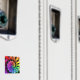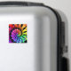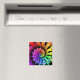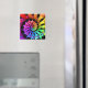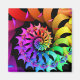 Cet aimant présente une spirale d'art fractal avec un arc-en-ciel de couleurs, dont le rouge, l'orange, le jaune, le vert, le bleu, le violet et le rose sur le noir.