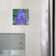 Une photo de fond d'une belle fleur d'iris bleu imprimée sur un aimant de frigo carré.