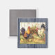 Aimant Frigo à rôtissoire Bleu Pays Français / Bébé Poussins. Ce design est tiré des nombreux vieux rideaux et nappes de ma grand-mère. Elle les gardait dans un vieux coffre de cèdre. Grannie aimait les poulets et les coqs !