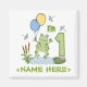 Première Anniversaire mignonne grenouille sautant verte avec étang, cattails, libellules et ballons. Le texte dit "J'ai 1". Toads, grenouilles et choses amphibiens.