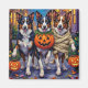 Les adorables Bordures Collies habillés de costumes d'Halloween ludiques portent des seaux citrouilles tout en faisant un tour ou en traitant sous le ciel illuminé par la lune. Ce design festif met en valeur les yeux intelligents de la race, son manteau moelleux et sa personnalité énergique, capturant parfaitement l’atmosphère éffrayante et amusante de la nuit d’Halloween. Une délicieuse célébration pour les amoureux de les chiens comme pour les amateurs d'Halloween.
