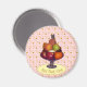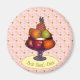 Aimant mignon avec des fruits et des pois en or et des couleurs roses sur arrière - plan rose clair. Sous le bol de fruits, il y a un texte personnalisable : "Meilleur Nourriture Jamais".