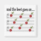 Musique amusante ou betterave disant avec les mots Et la betterave continue et une illustration de partitions avec des betteraves pour des notes. La betterave est un légume sain mais amusant et quand elle est mise en musique, encore plus amusant!