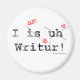 A cool and silly grammar goof I is uh writer goofy grammar writer slogan writing design process motivational slogan author pride illustrated motto design I love writing book lover bookish aesthetic motto magnet or pin button that’s perfect for writers of all genres. Get an awesome silly author motto button or magnet today.