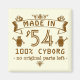 Cet amusant gag cadeau de nouveauté d'anniversaire magnet carré dit, "Fabriqué en ___ / 100% Cyborg / pas de pièces originales encore." Le design unique sur la colline est réalisé en brun avec une combinaison de fleurs rétro / vintage, une bannière et deux petits robots. Changez facilement l'année à l'année où le bénéficiaire est né. C'est le cadeau d'anniversaire humoristique parfait pour un geek ou un nerd qui aime les robots.