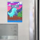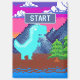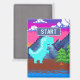 Funny Pixel Gamer Pixelated- Dinosaur Illustration Rectangle Magnet; This funny nostalgic design features pixel art of a Dinosaur in nature. There is mountains, fir trees, and clouds in colorful sky. In front pixelated font "START" for beginning of the game, I've used a pop color palette, to give the art a 90s Video Games Aesthetic.