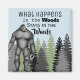 Un aimant amusant pour votre maison, camping-car ou cabine. Une forêt avec un Sasquatch et le message, "Ce qui se passe dans les Bois...Reste dans les Bois"