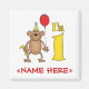Mignonne et drôle singe portant un casquette de premier anniversaire tenant une banane et un ballon rouge debout à côté d'un grand nombre 1.