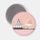 Des gâteaux Art déco posés sur une nappe à rayures qui semblent tout simplement délicieux. Un très joli aimant.