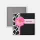 Un article de mode féminin design avec un motif de girafe noir et blanc tendance agrémenté d'une fleur marguerite rose ceinturée. Personnalisez en ajoutant votre nom à ce design moderne. Parfait pour la fashionista chic.