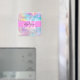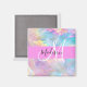 Nom monogramme irisé holographique de l'arc-en-ciel et aimant initial. Votre nom personnalisé et votre monogramme sont écrits dans un élégant script écrit à la main avec un arrière - plan rose. Un cadeau d'anniversaire ou de Noël parfait !