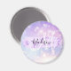 Aimant jeune et mignon avec un coeur arc-en-ciel couleur rose, violet, lilas et bleu unicorne arrière - plan brillamment. Votre nom personnalisé et votre monogramme sont écrits dans un élégant script écrit à la main avec un arrière - plan de rayures de pinceau violet lilas unicorn pinceau. Un cadeau d'anniversaire ou de Noël parfait !