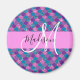 Fille et glam violet, lilas, aqua et bleu parties scintillant sirène scintillent le nom monogramme et l'aimant initial. Votre nom personnalisé et votre monogramme sont écrits dans un élégant script écrit à la main avec un arrière - plan rose. Un cadeau d'anniversaire ou de Noël parfait !