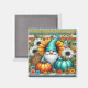 Aimant Gnome Avec Citrouilles Et Fleurs