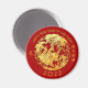 Papier chinois doré coupé de deux jeunes tigres + paysage (modèle n°3) en cercle ouvert + petit idéogramme chinois de tigre + Bonne année en chinois et anglais et grande 2022. Conception sur aimant rond avec arrière - plan rouge. Vous pouvez facilement modifier la couleur et l'année de l'arrière - plan (police, couleur, taille et position) en cliquant sur le bouton personnaliser. Carte de voeux et carte postale correspondant. Parfait pour un Nouvel An chinois moderne et intemporel du Tigre 2022.