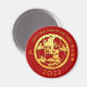 Papier chinois doré coupé d'un tigre buvant dans un étang (modèle n°7) en cercle + petit idéogramme chinois de tigre + Bonne année en chinois et anglais et grande 2022. Conception sur aimant rond avec arrière - plan rouge. Vous pouvez facilement modifier la couleur et l'année de l'arrière - plan (police, couleur, taille et position) en cliquant sur le bouton personnaliser. Carte de voeux et carte postale correspondant. Parfait pour un Nouvel An chinois moderne et intemporel du Tigre 2022.