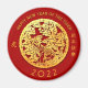 Papier chinois doré coupé d'un tigre (modèle n°8) en cercle + petit idéogramme chinois de tigre + Bonne année en chinois et anglais et grande 2022. Conception sur aimant rond avec arrière - plan rouge. Vous pouvez facilement modifier la couleur et l'année de l'arrière - plan (police, couleur, taille et position) en cliquant sur le bouton personnaliser. Carte de voeux et carte postale correspondant. Parfait pour un Nouvel An chinois moderne et intemporel du Tigre 2022.
