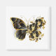 Or flower butterfly with black jewelry orchid, decorated with gold leaves on white background.