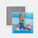 Cet aimant présente un récupérateur d'or habillé comme un plongeur dans l'océan. Le message dit : "Plongez !".