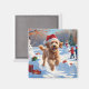 Aimant Goldendoodle Courir en neige avec Casquette de Noë