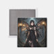 A pretty magnet with an anime fairy girl dressed in a black gothic dress in an enchanted forest fantasy art.