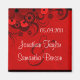 © Sunny Mars Designs - Floral Hibiscus : Rouge foncé sur Rouge Mariage Carré Enregistrer La Date Fridge Magnets - Mariage imprimé tendance, élégant, moderne, chic, personnalisable enregistrer la date faire-part aimants frigo avec rouge foncé, cramoisi, bordeaux, rubis ou marron tourbillonnant motifs floraux hibiscus tropicaux contre un arrière - plan rouge vif.